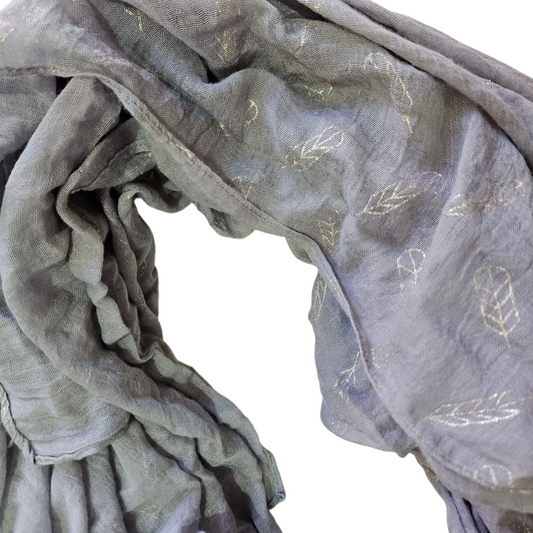 צעיף בד אפור דק עם הדפס נוצות כסופות
