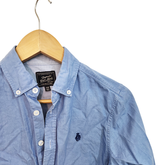 חולצה מכופתרת שרוול ארוך צבע כחול | לילדים גיל 10-12