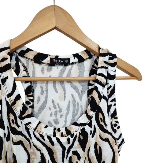 אריסטו שמט | טופ סאטן בהדפס זברה עם כתפיות פנינים | לאישה מידה 1 S