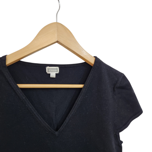 ETAM | חולצת סריג דקה קצרה צבע שחור | לאישה מידה 42 XL