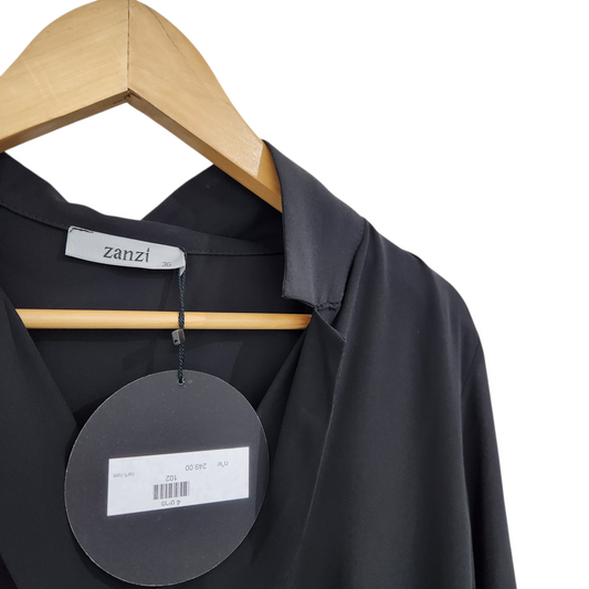 ZANZI | חולצה ארוכה דקה מעוצבת צבע שחור | לאישה מידה 36 S | חדשה עם תווית