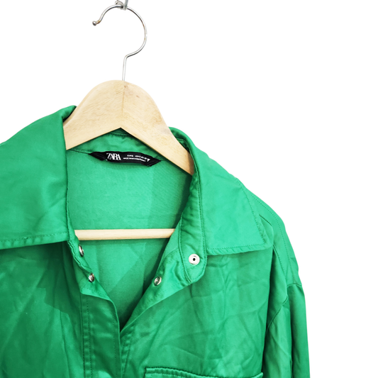 ZARA | חולצה ארוכה סטן צבע ירוק | לאישה מידה S