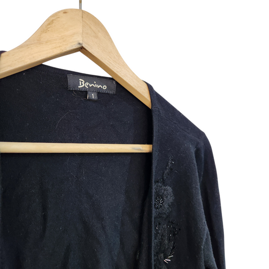 BENINO | חולצת מעטפת סריג צבע שחור | לאישה מידה 1