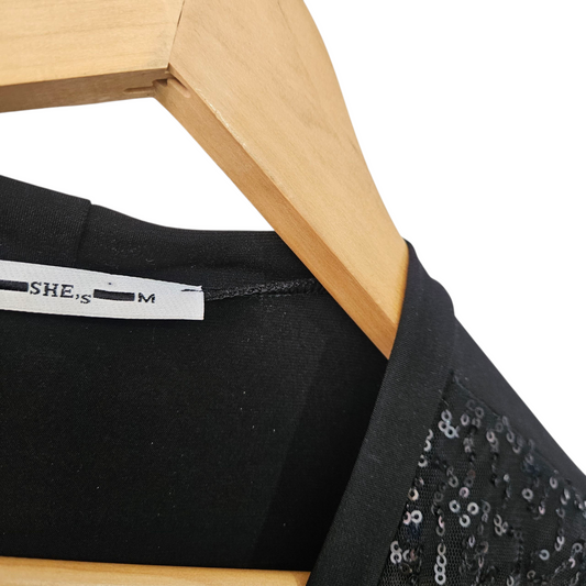 SHE'S עליונית שחורה עם פייטים לאישה מידה M