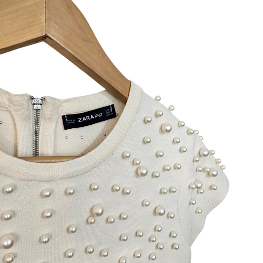ZARA שמלה מעוצבת צבע קרם לאישה מידה M