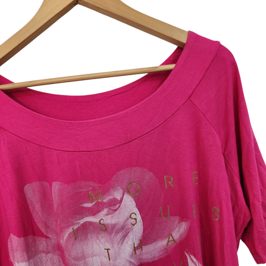 DISCTEER | טי שירט ורודה עם הדפס פרחוני וכיתוב – שרוול קצר | לאישה מידה 4 XL