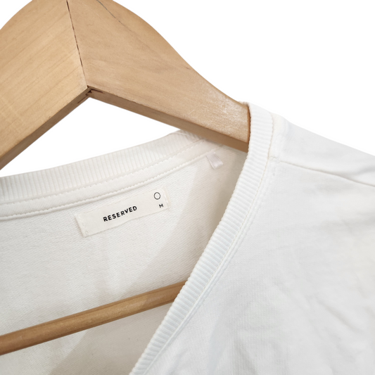 L.G.M חולצת טי בגזרת וי בהדפס ג’ינס משופשף | לאישה מידה L
