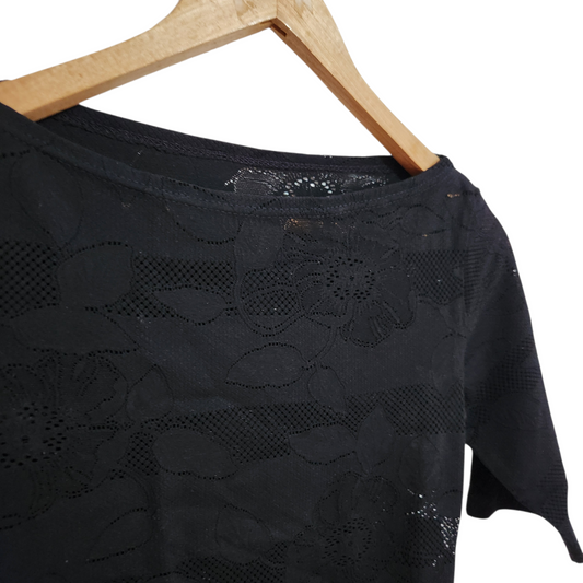 נובל אופנה - חולצת תחרה קצרה צבע שחור | לאישה מידה S/M