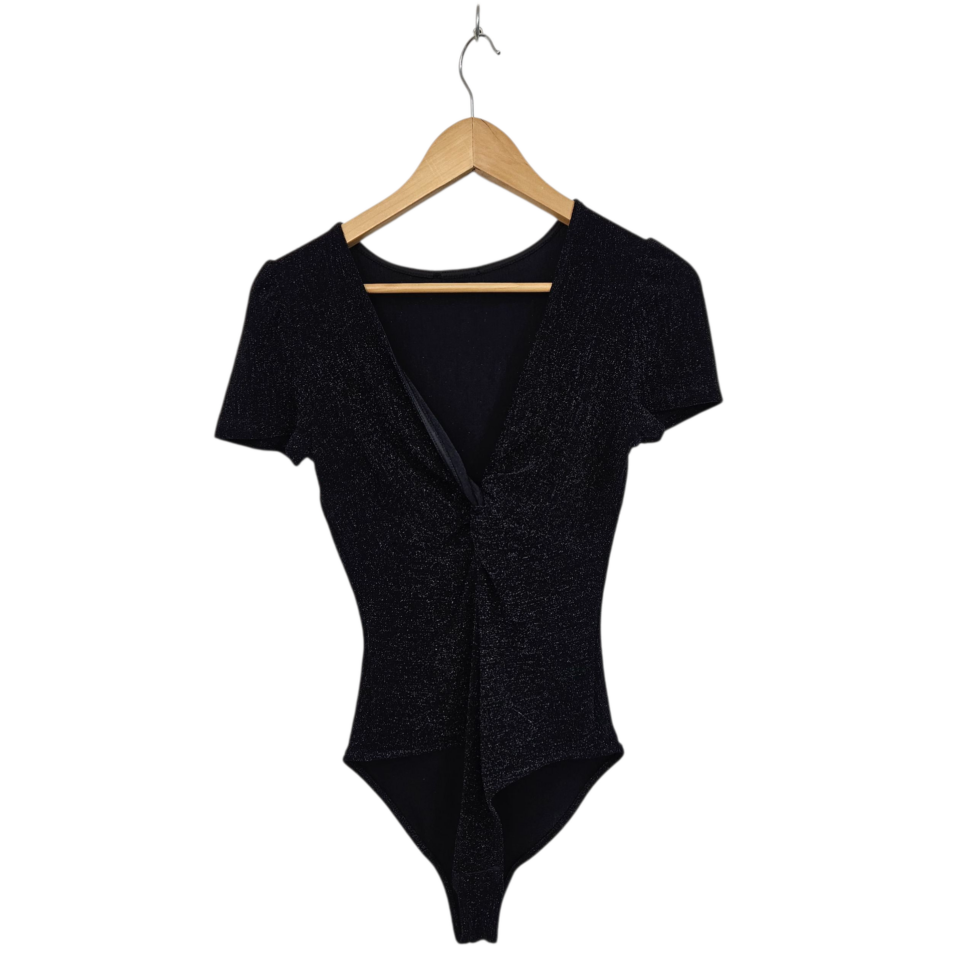 בגד גוף שחור נוצץ לאישה מידה M