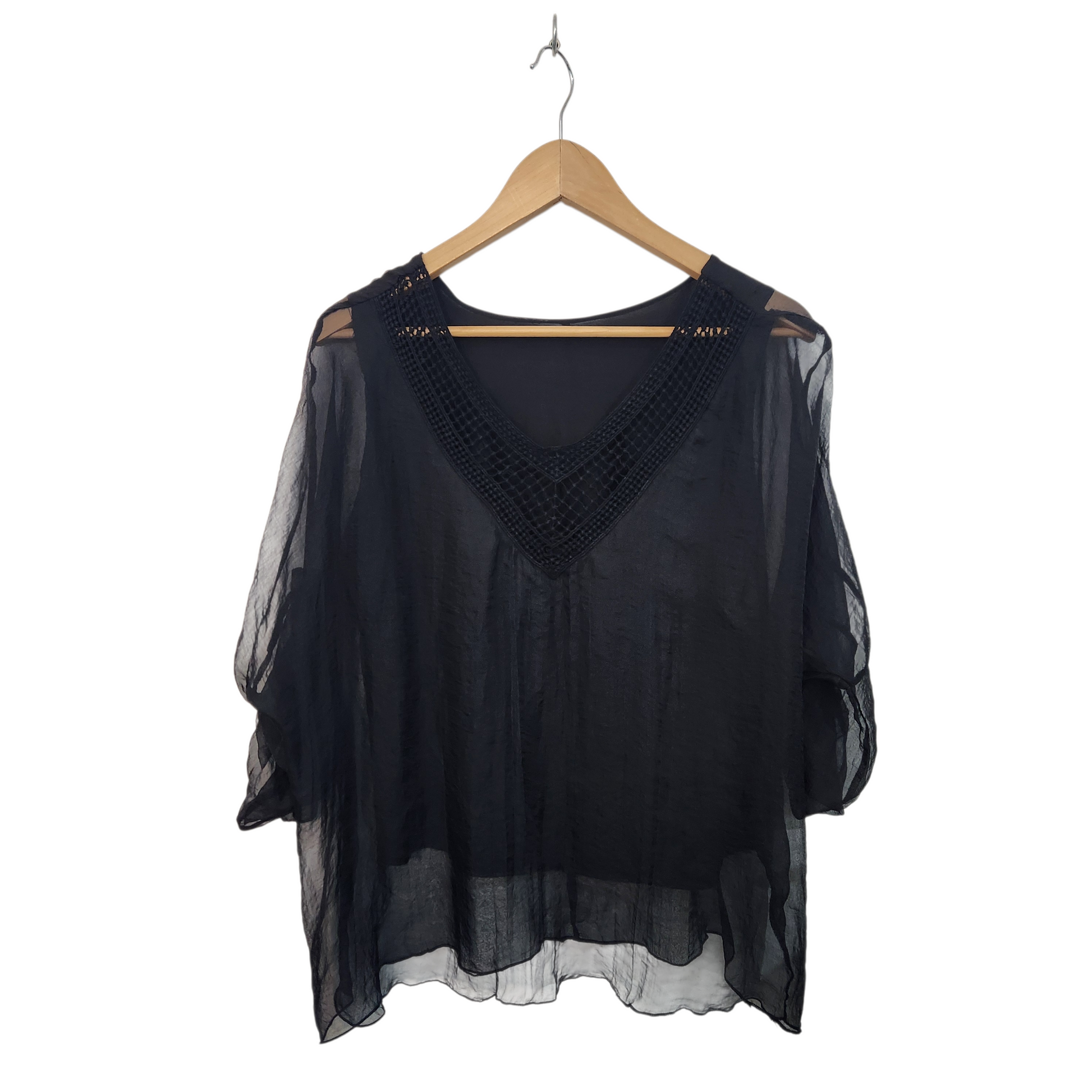 חולצה מעוצבת צבע שחור| לאישה מידה M/L