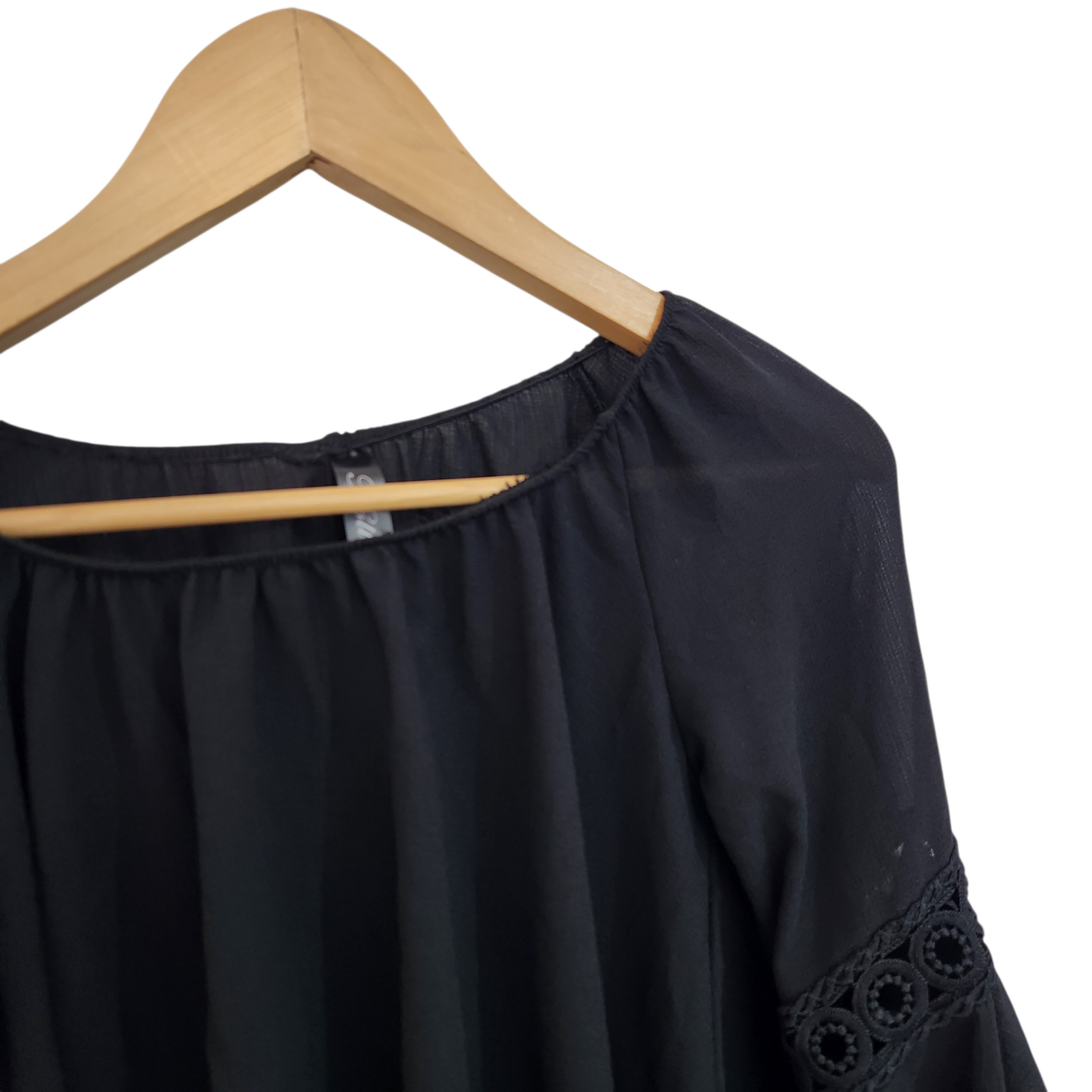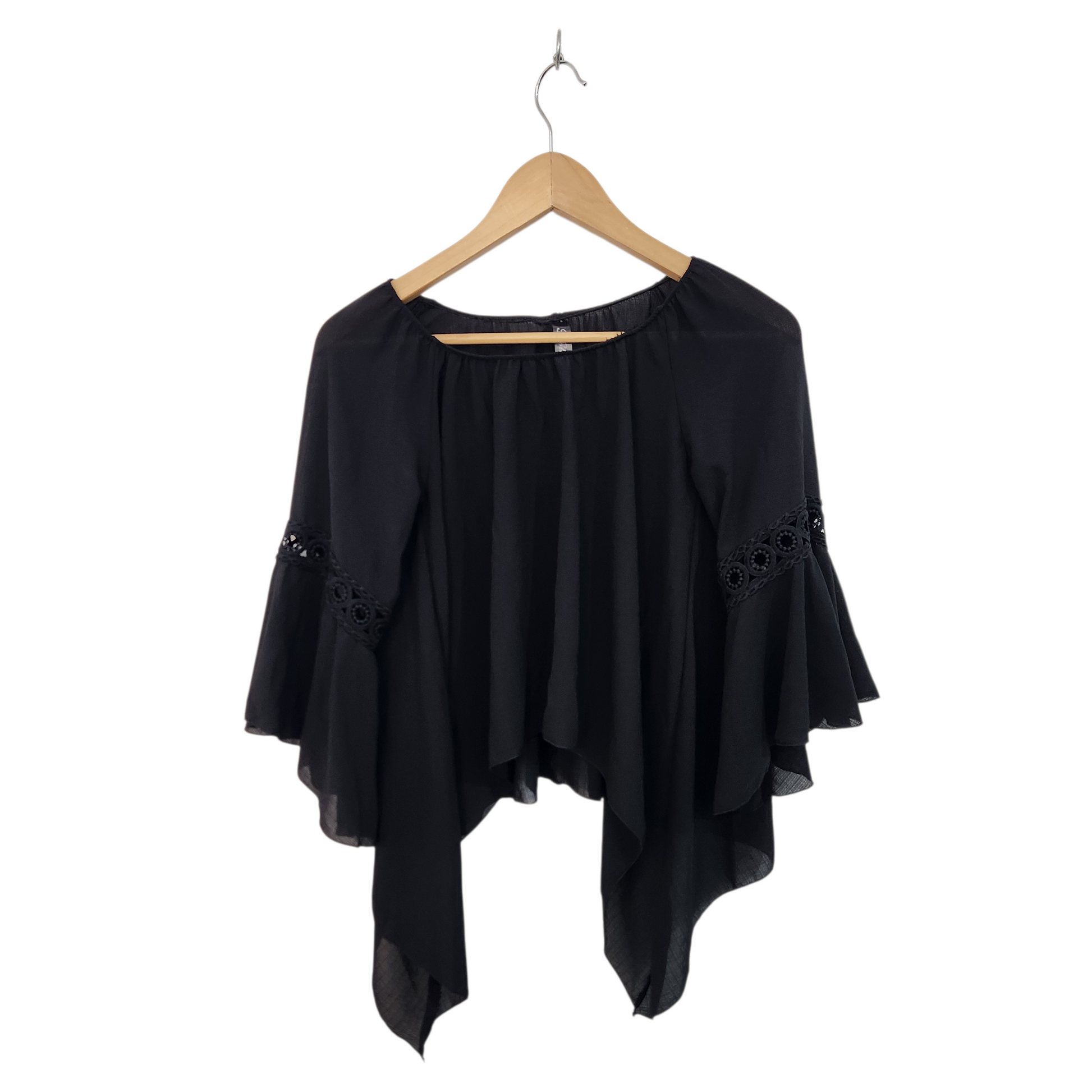 HOLLA חולצה שחורה נשפכת עם שרוולים רחבים לאישה מידה M