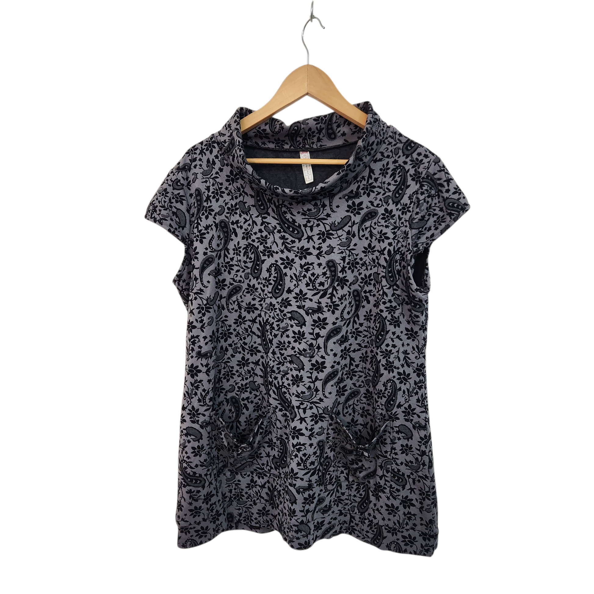 טוניקה אפורה עם הדפס פייזלי ושרוול קצר | לאישה מידה 5