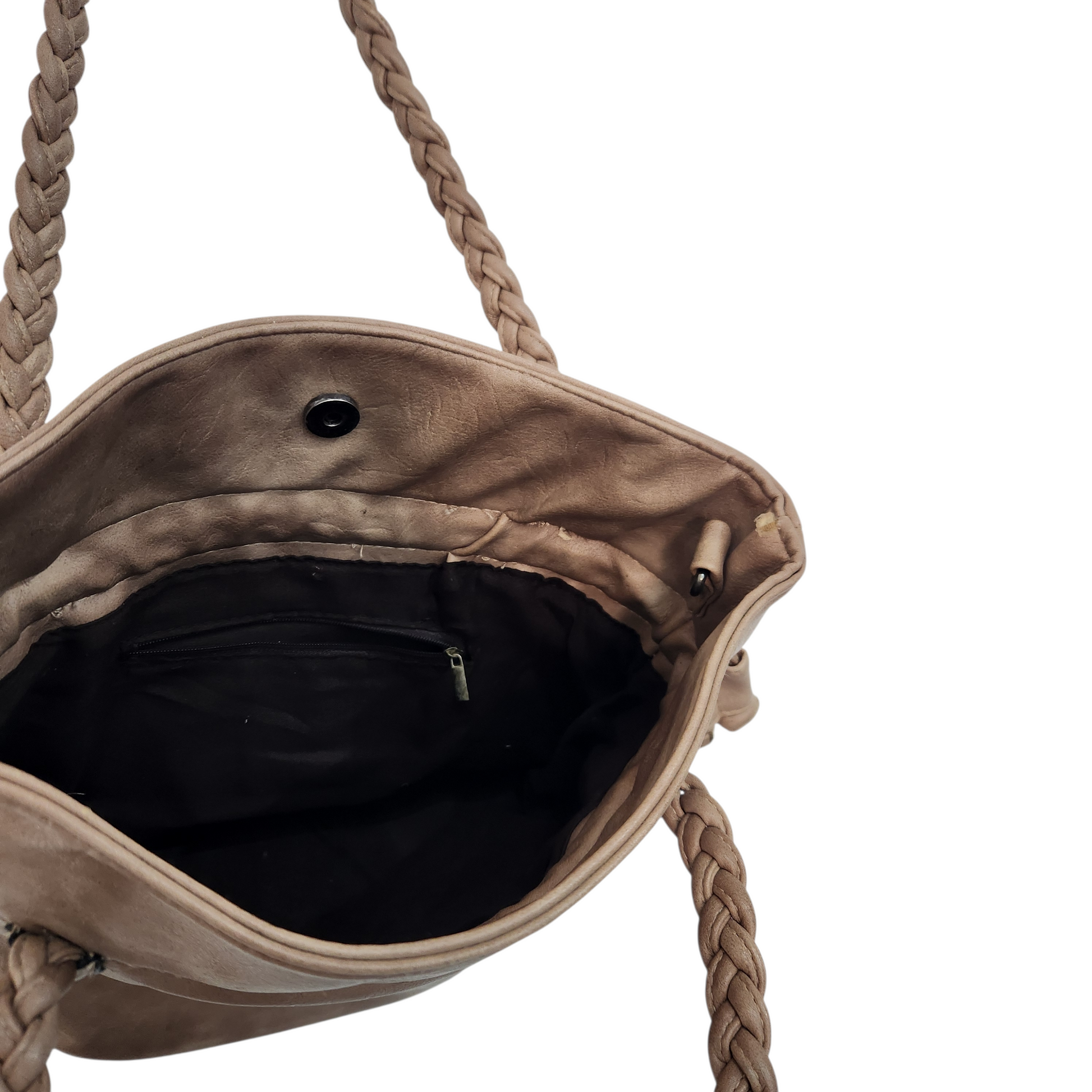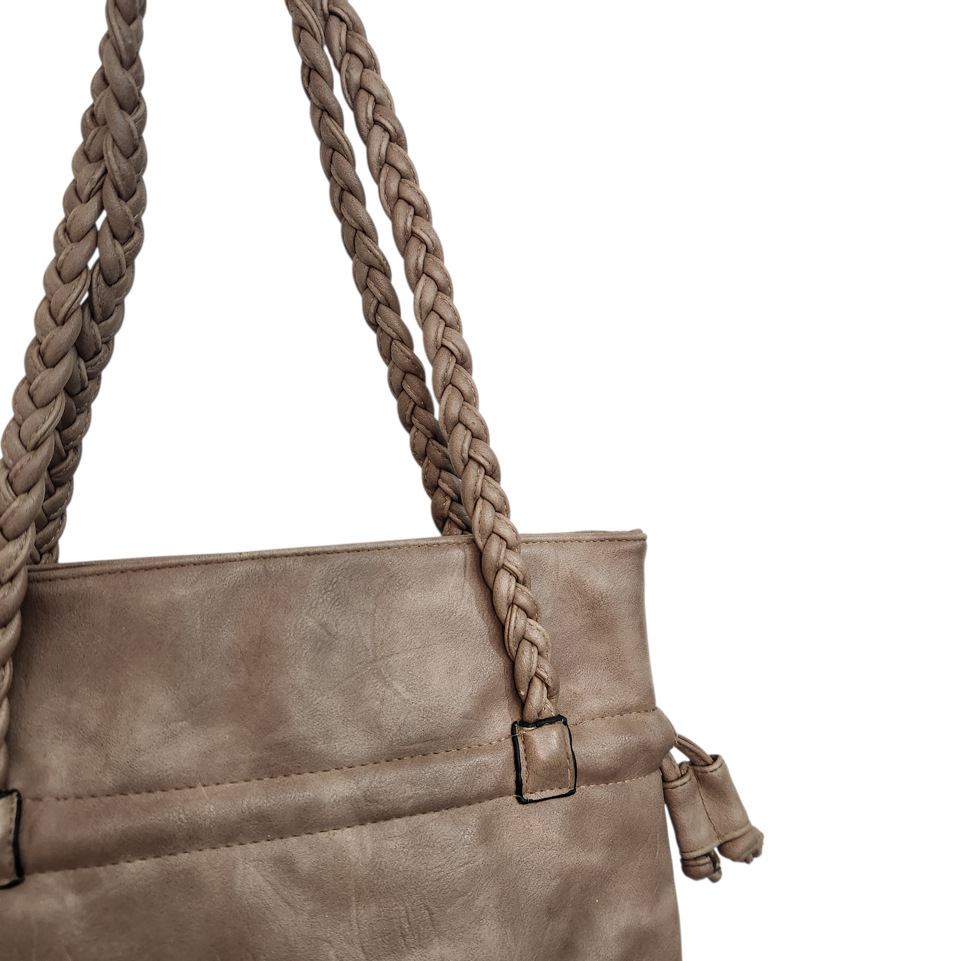 תיק כתף חום עם ידיות קלועות