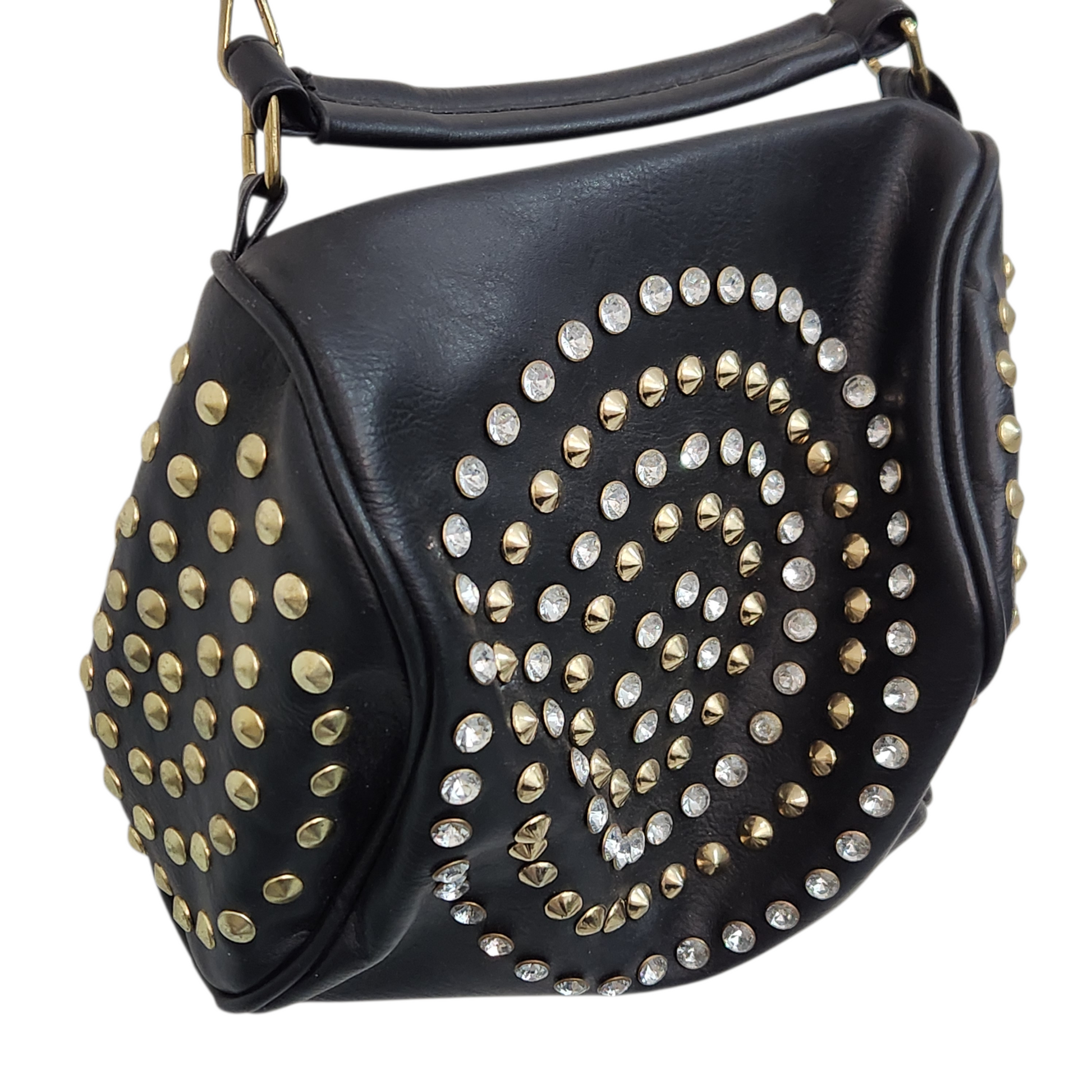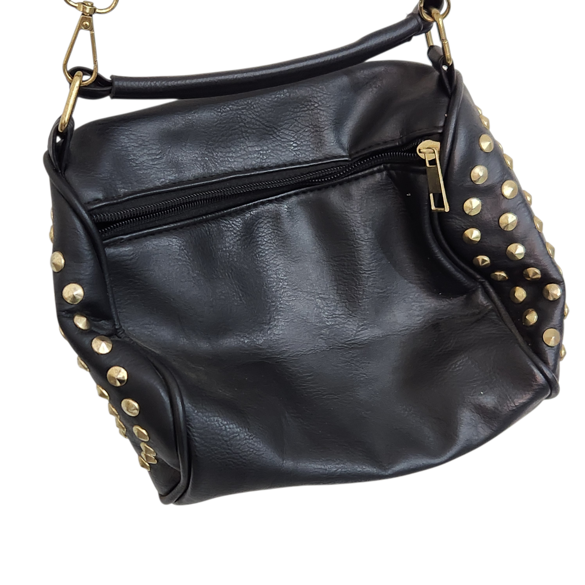 תיק צד שחור עם ניטים זהובים
