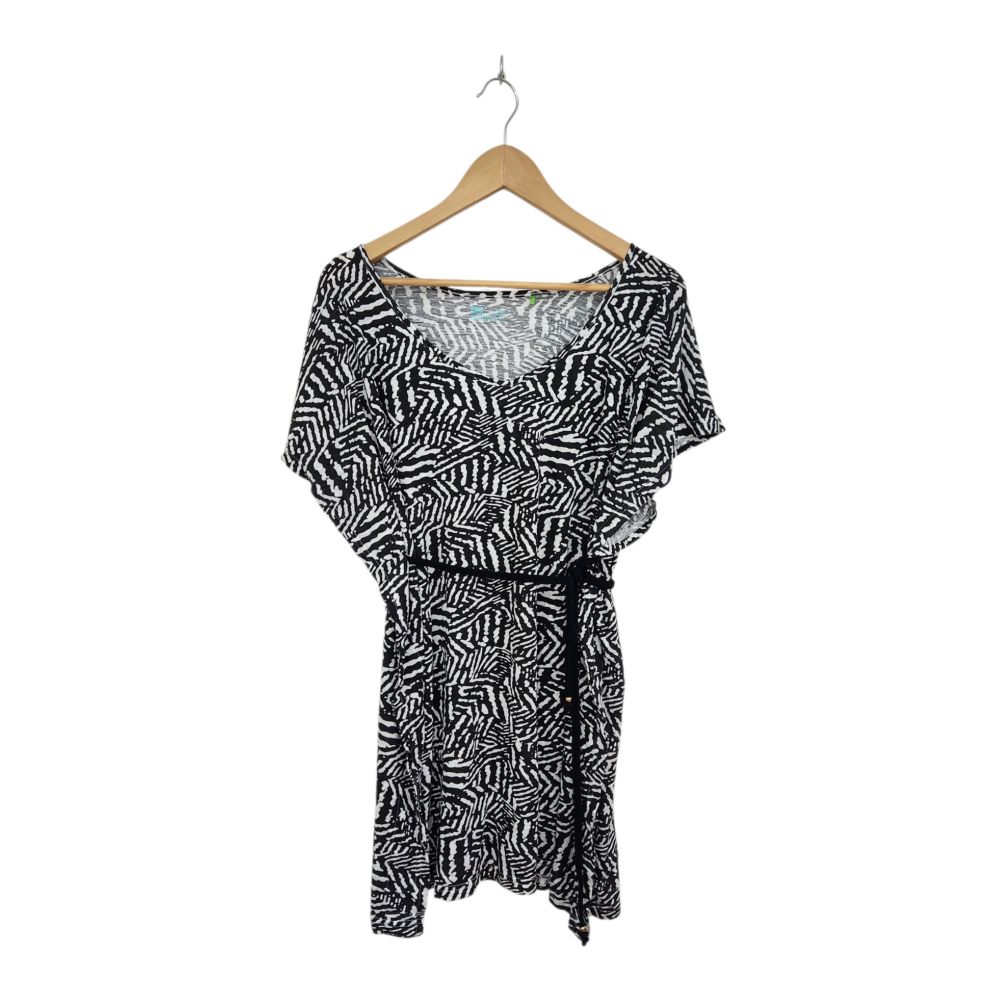 DELTA שמלה עם רצועת קשירה למותן צבע שחור לבן | לאישה מידה S/M