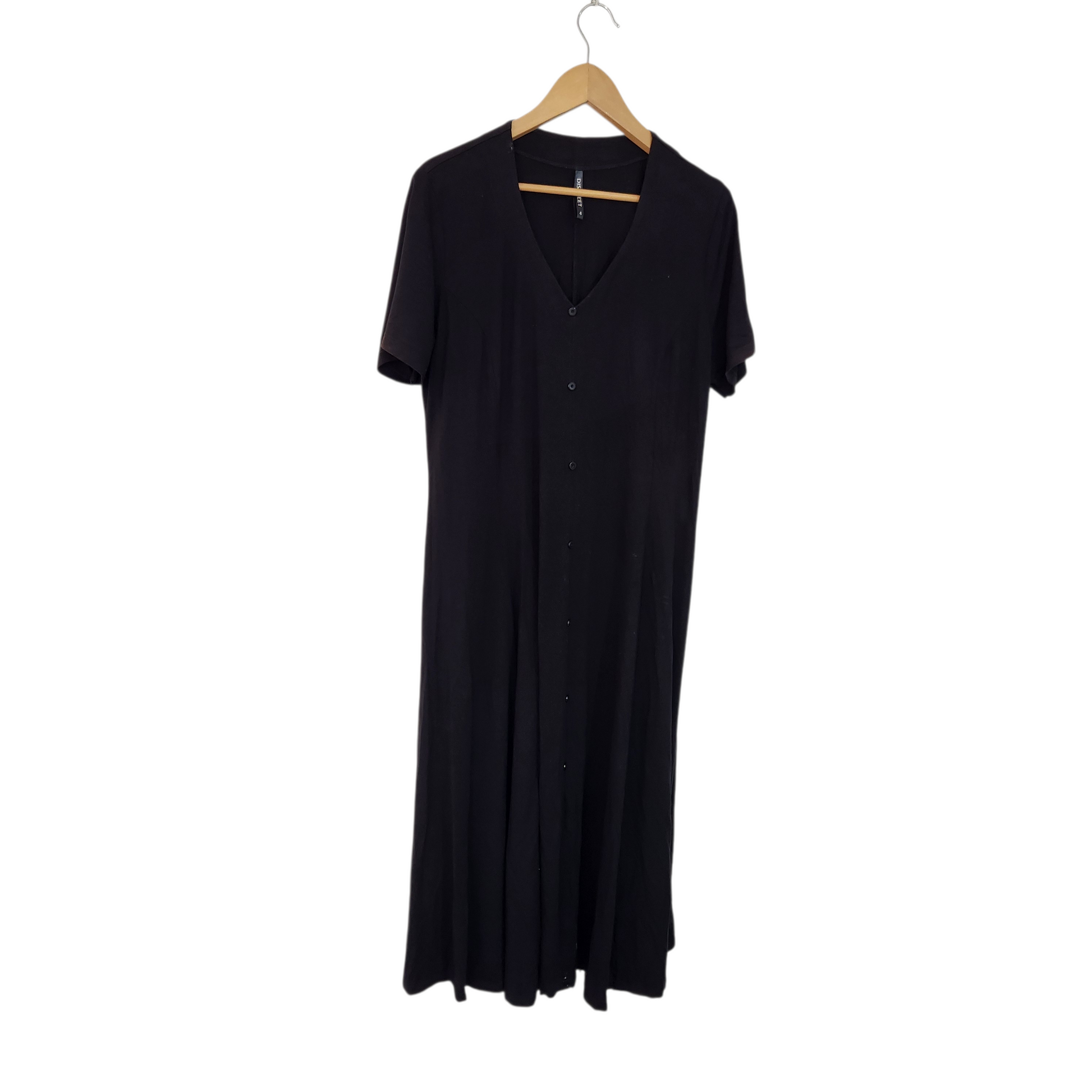 DISCTREET | שמלת מקסי שחורה מכופתרת עם שרוול קצר – מידה 4