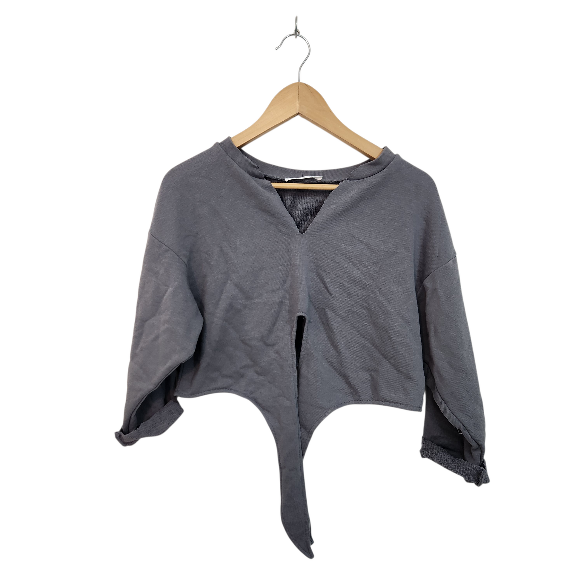 FEMME FIT | חולצה קרופ ארוכה דקה צבע אפור | לאישה מידה XS/S
