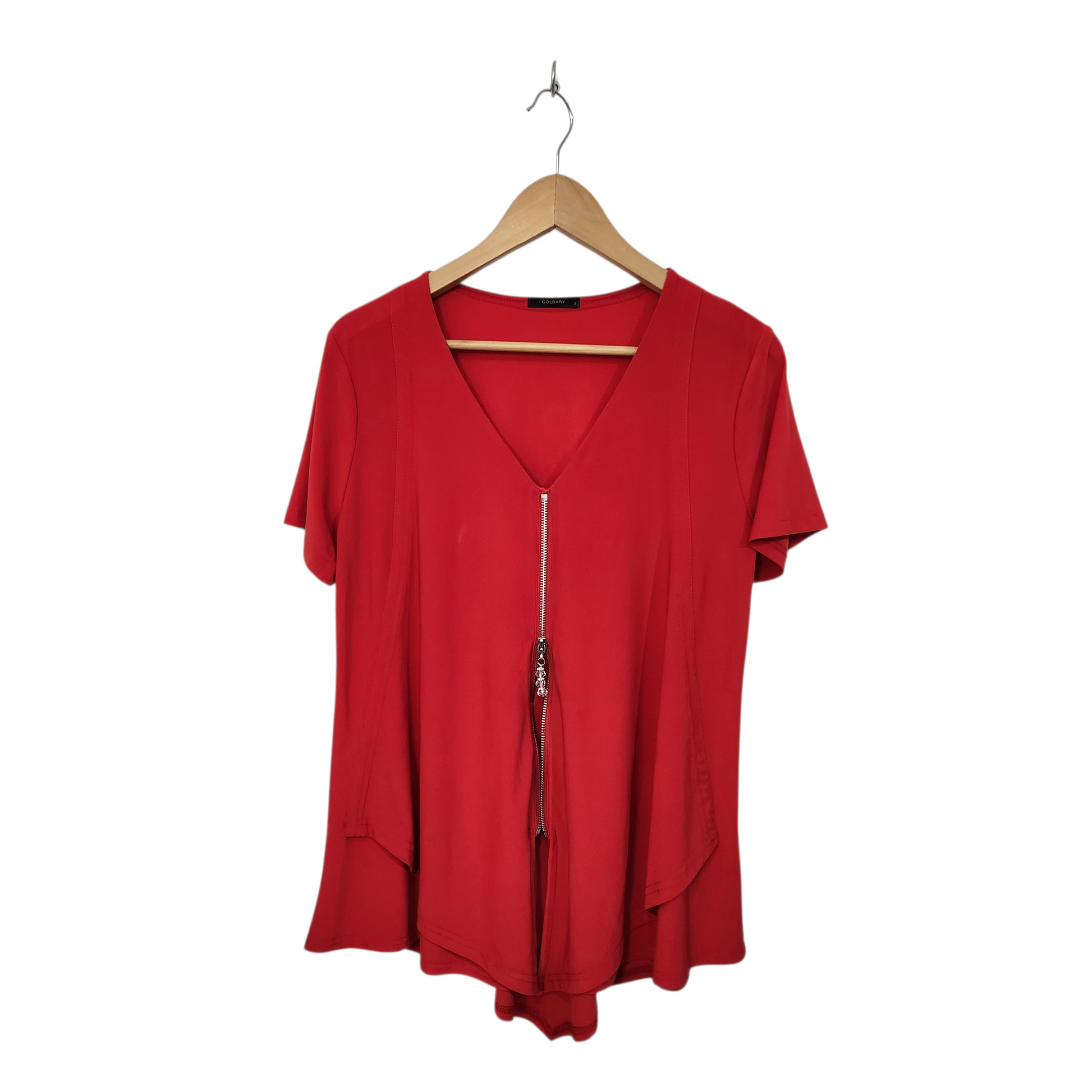 GOLBARY | חולצה קצרה צבע אדום מעוצבת | לאישה מידה L | כתם קטן