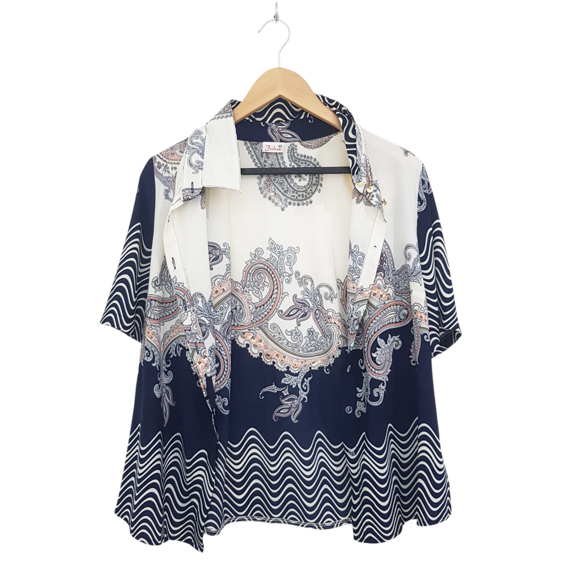 JUKA חולצה מכופתרת עם כריות כתפיים לאישה מידה XL/XXL