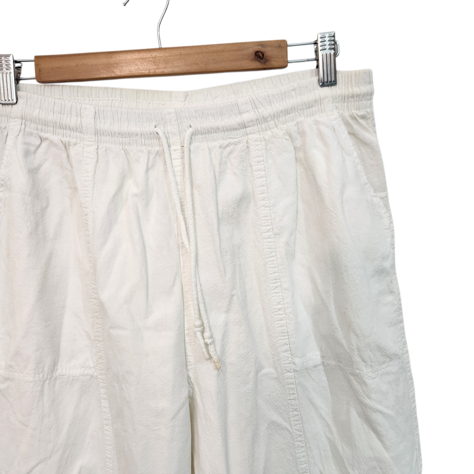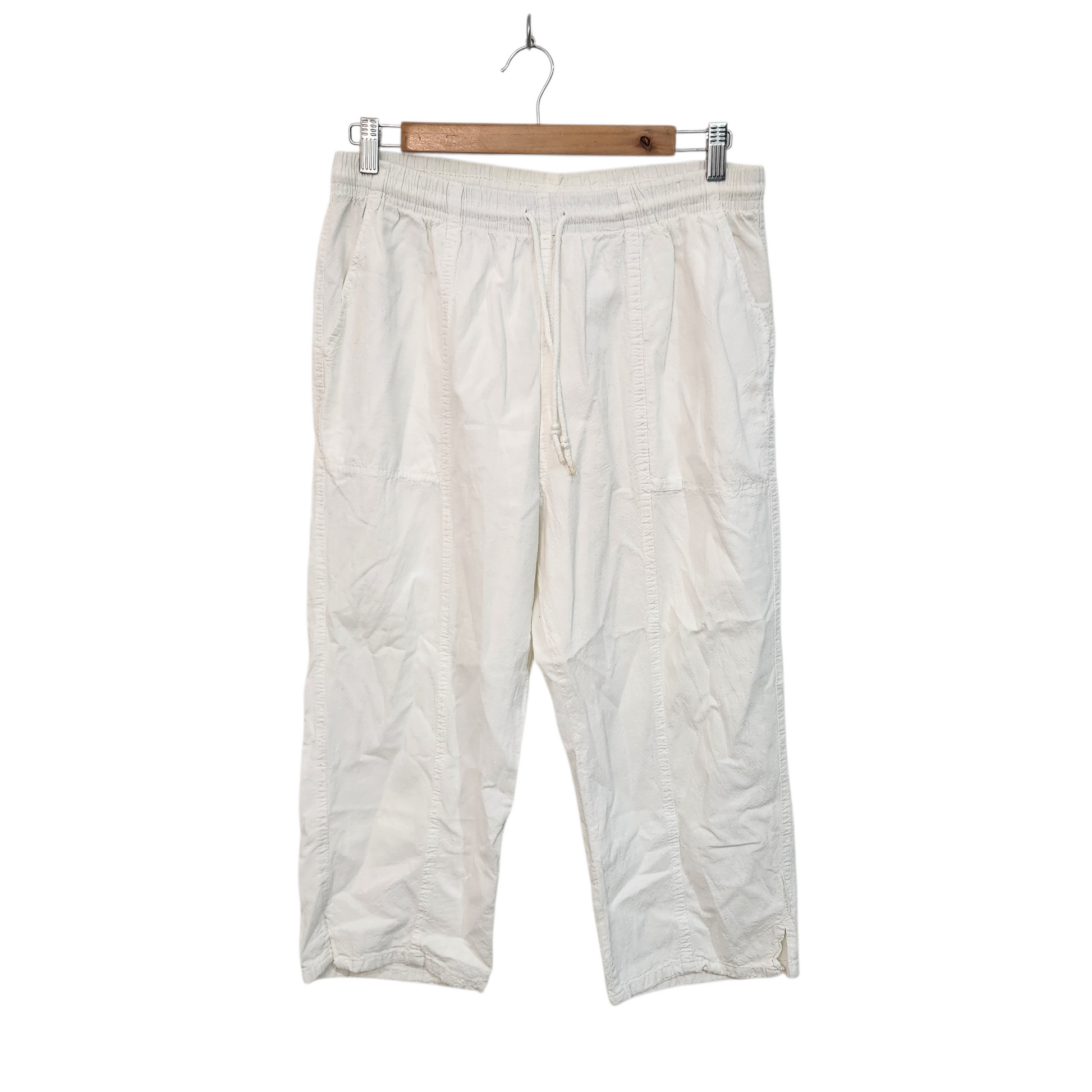 KIRTEKS | מכנסי שרוול 7/8 דקים צבע לבן | לאישה מידה XXL | 30-40 אינץ' גומי נמתח במותן