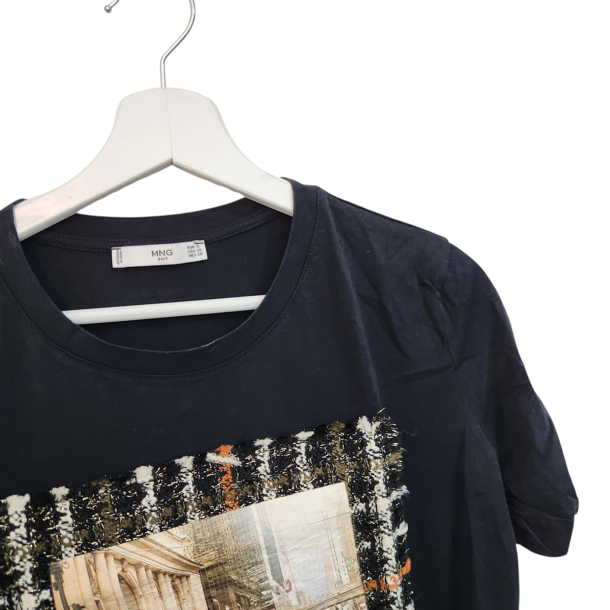 MANGO | חולצה קצרה צבע שחור | לאישה מידה S