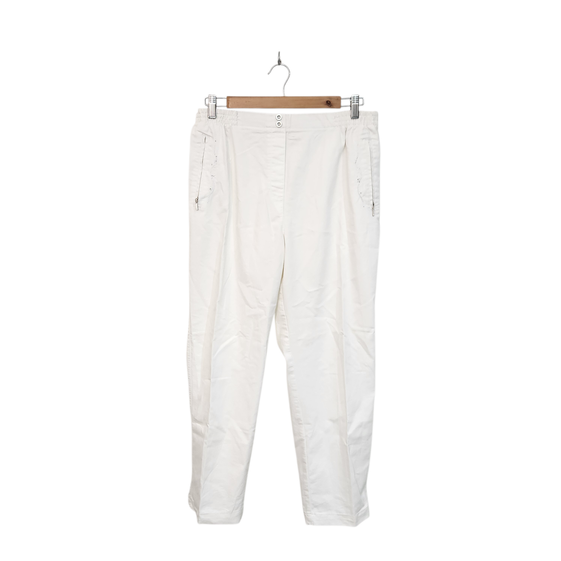 NEW FASHION | מכנסיים לבנים עם עיטורים בכיסים | לאישה מידה 42 | 32 אינץ'