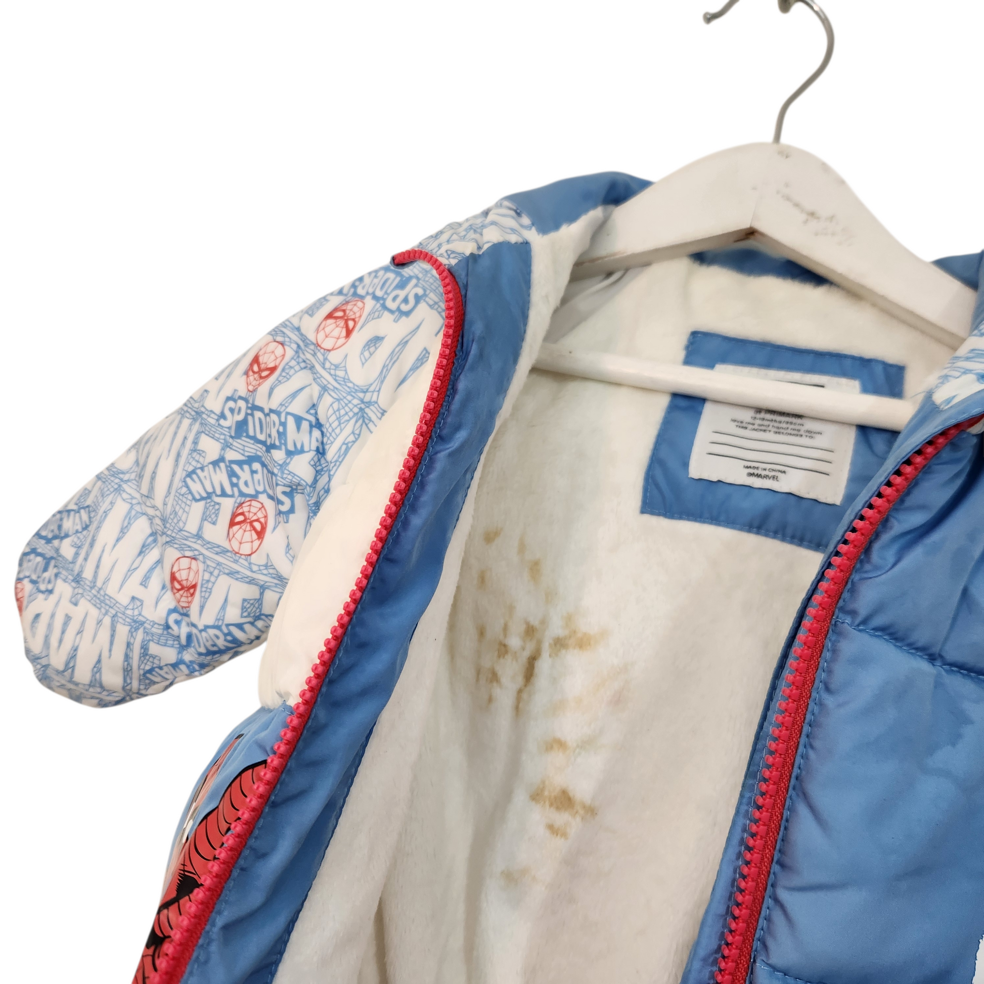 PRIMARK מעיל ספיידרמן לתינוקות | גיל 12-18 חודשים | כתם פנימי לא נראה כלפי חוץ