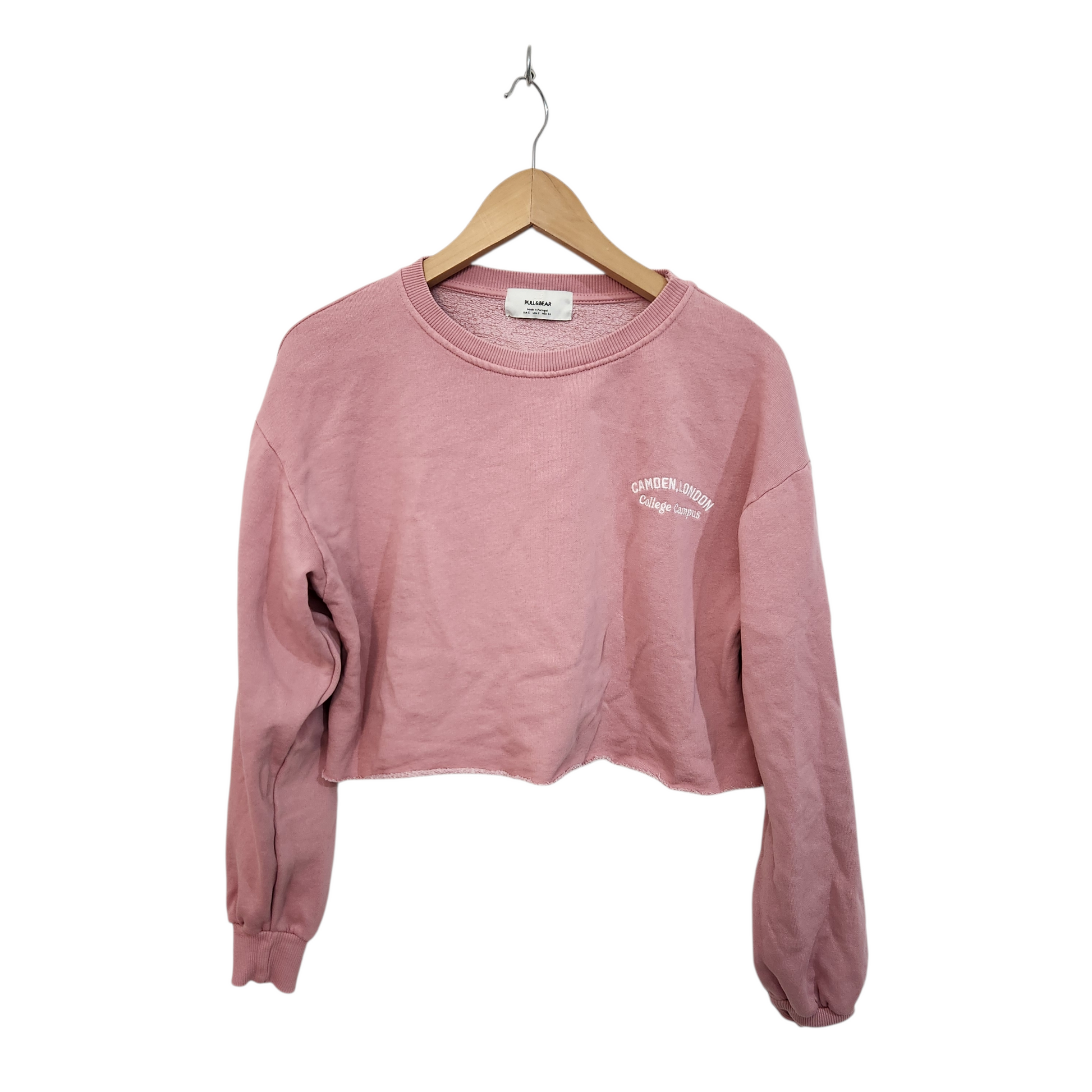 PULL& BEAR | חולצת קרופ שרוול ארוך צבע ורוד | לאישה מידה S