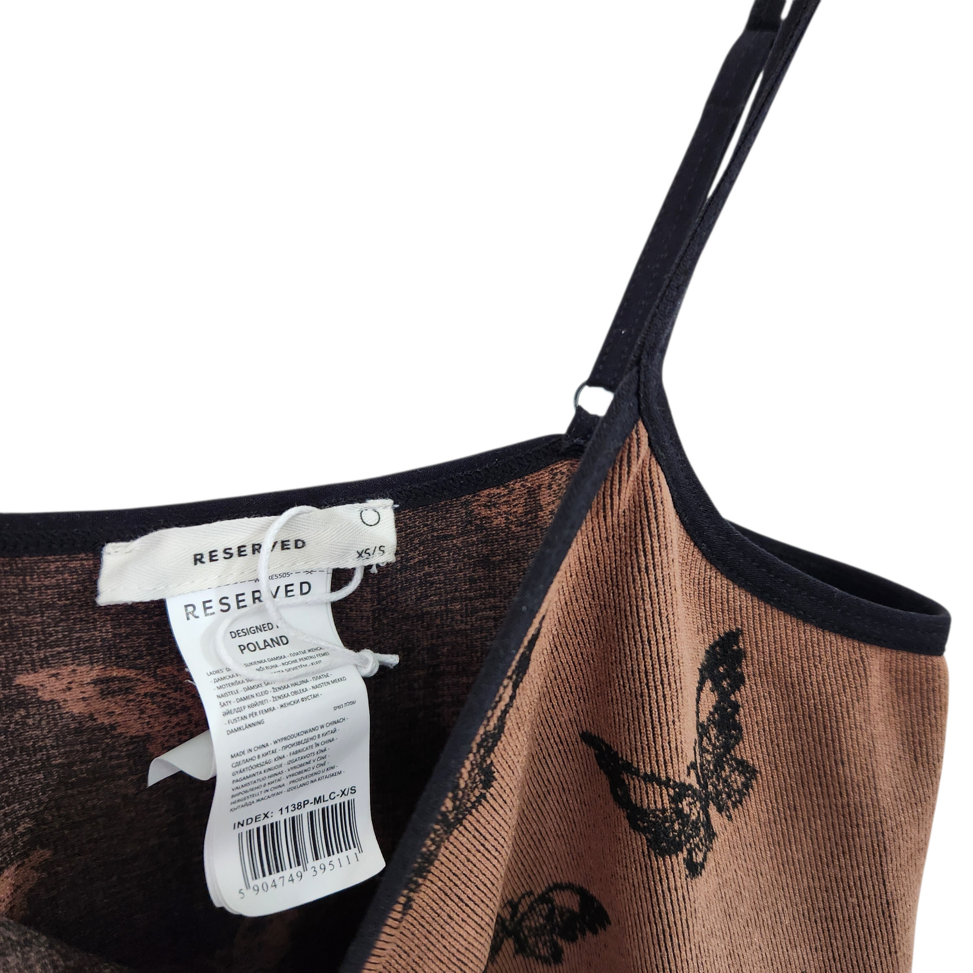 RESERVED | שמלה צמודה צבע חום עם פרפרים | לאישה מידה XS/S