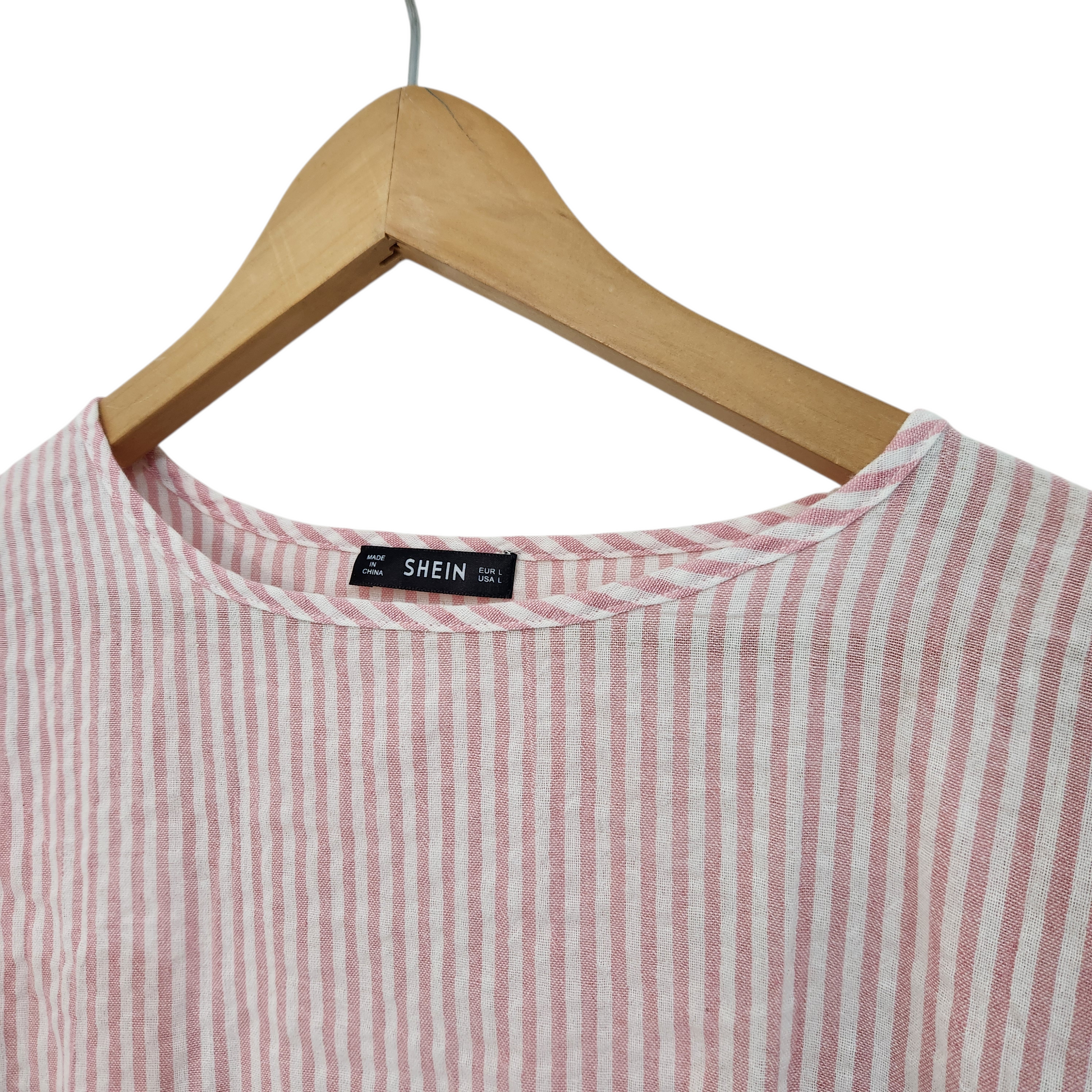 SHEIN | חולצת פסים צבעים ורוד ולבן הדפס פרחוני | לאישה מידה L