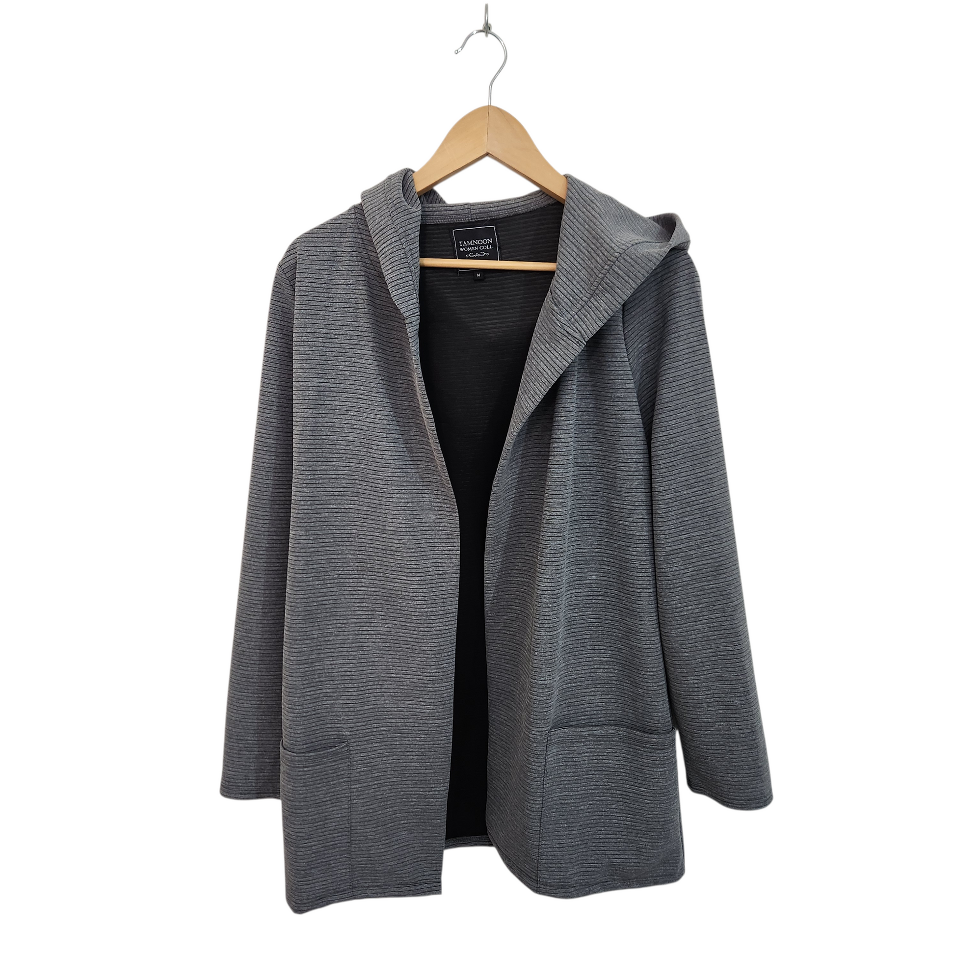 TAMNOON עליונית / ג'קט פתוח עם כובע לאישה מידה M